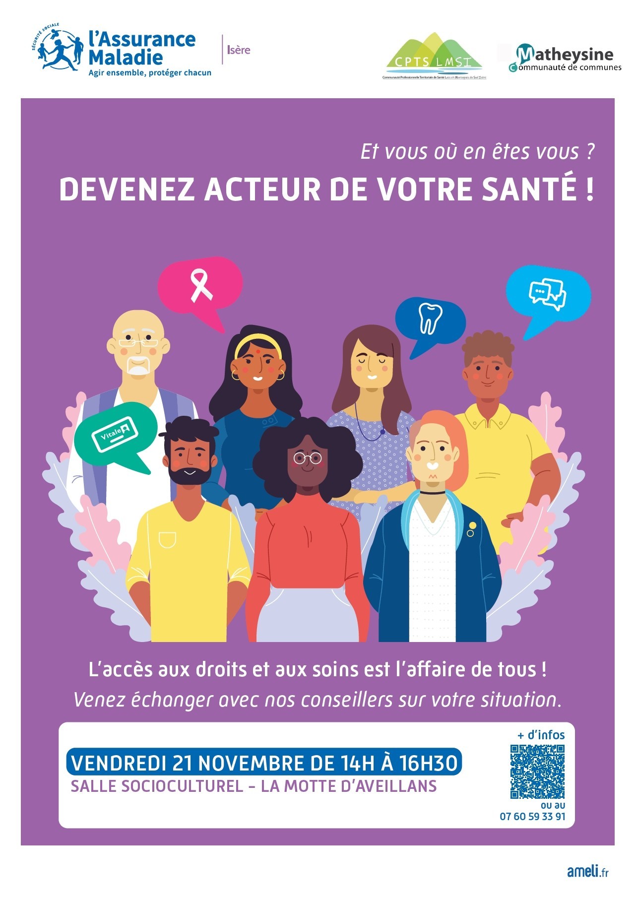 Soucieuse de faciliter votre accès aux soins, la CPAM de l’Isère organise près de chez vous, des temps d’échanges personnalisés.