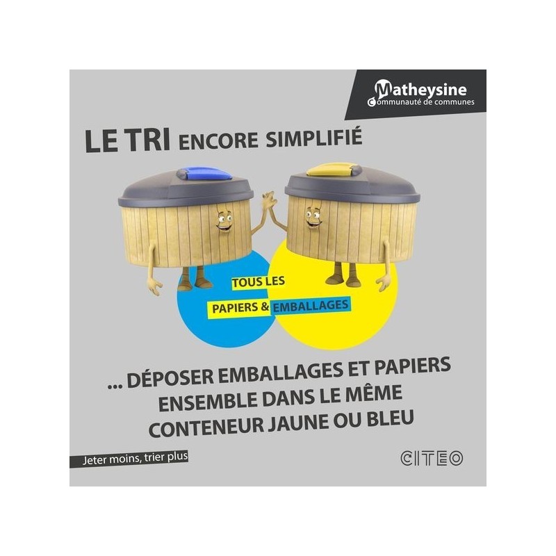 vous pouvez mettre les emballages ménagers recyclables et les papiers dans le